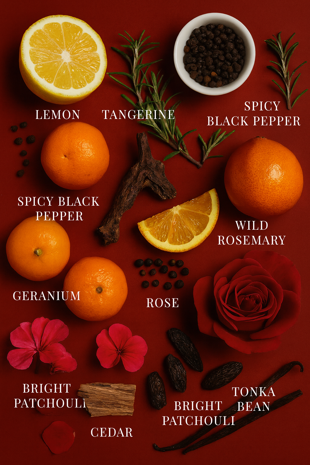 Conqueror Red Monarch is inspired by the bold intensity of Eros Flame, capturing the spirit of passion, confidence, and undeniable charisma. This fragrance opens with a striking burst of lemon, tangerine, and orange—an invigorating citrus trio that commands attention from the first spray. As it settles, fiery black pepper and wild rosemary ignite the senses, creating a warm, energetic heart balanced by touches of geranium and rose.